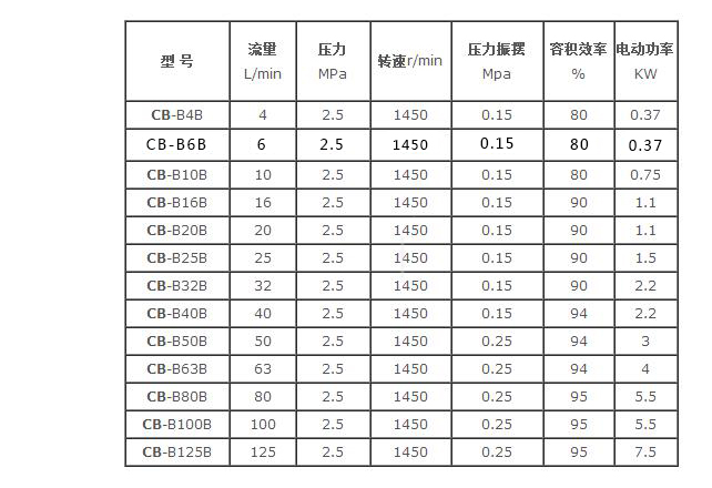 CB-B齒輪泵技術參數(shù)