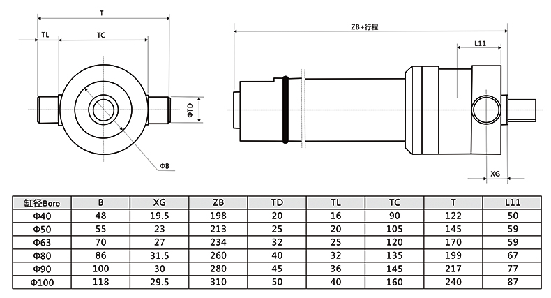 冶金液壓缸頭部銷軸外形安裝尺寸圖