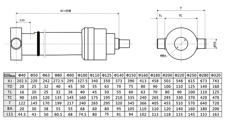 冶金液壓缸尾部銷軸外形安裝尺寸圖