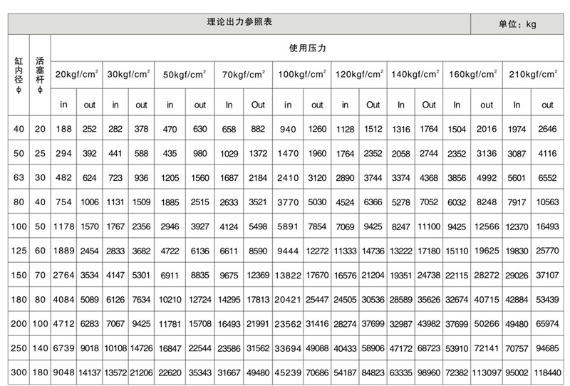 3)缸內(nèi)徑和活塞桿直徑的單位為毫米mm。